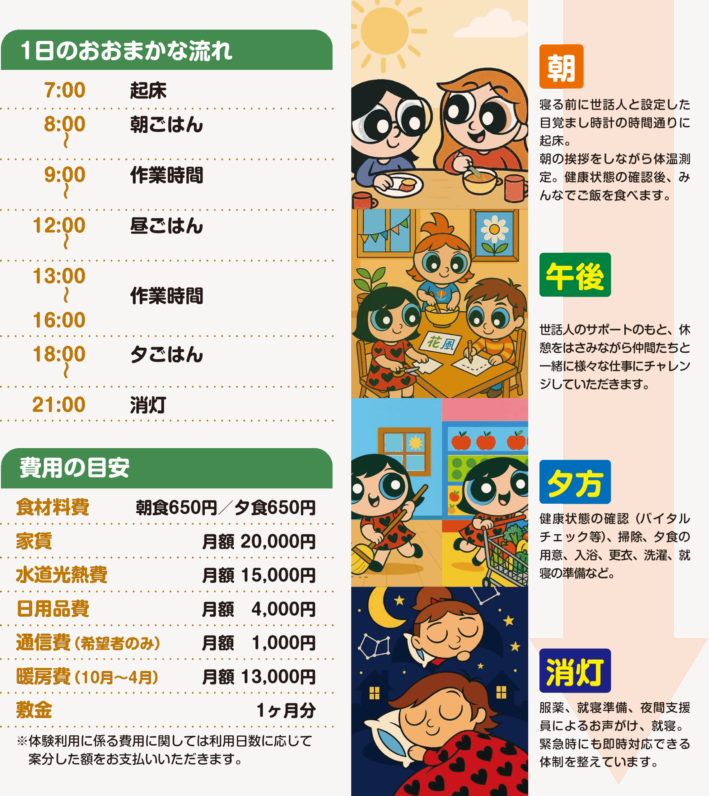 ※上記は一例です。ご利用される際にはご利用者様にあったプランをスタッフと話し合い、柔軟に決めていきます。