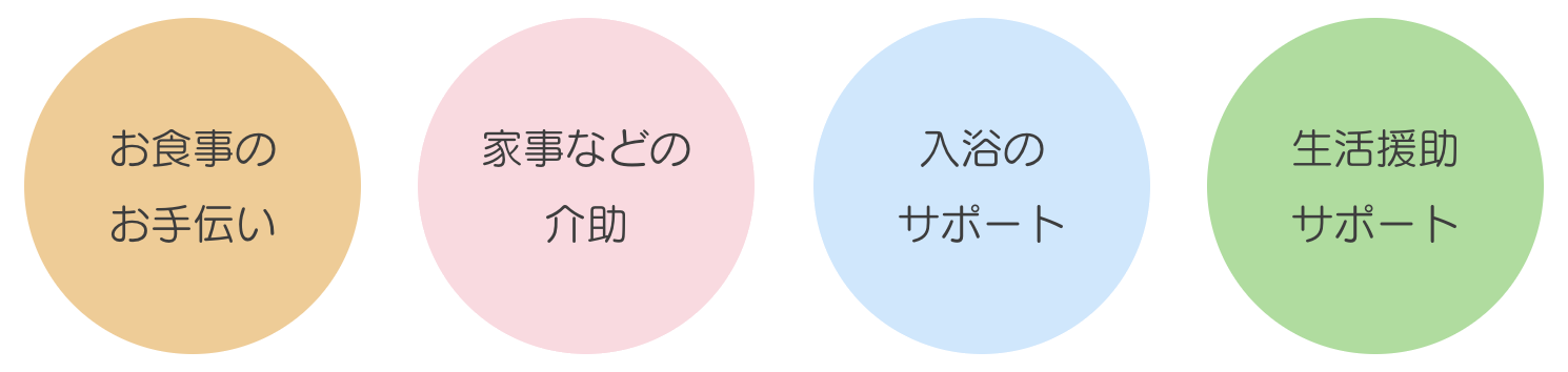 日常生活での補助、身の回りのことや家事など、ご利用者様のライフスタイルに応じてお手伝い致します。